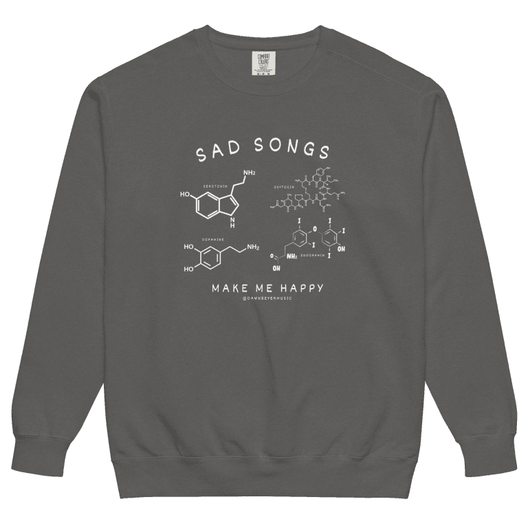 Thanks for giving me someone to sing for, to write for, and to make t-shirts for. I have fun with it. – Dawn